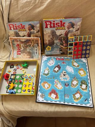 Juego de mesa Risk Junior, perfecto para los más pequeños. Una versión adaptada del clásico juego de estrategia. - Edición Mi Primer Risk. - Apto para mayores de 5 años. - Para 2 a 4 jugadores. Más juegos en mi perfil para hacer un lote y ahorrar gastos de envío.