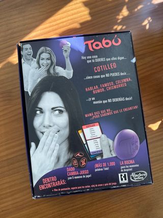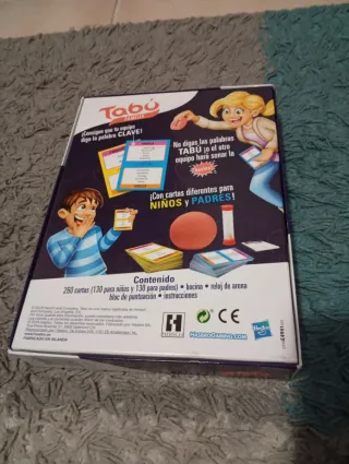 Juego de mesa Tabú de Hasbro, ideal para toda la familia. Contiene más de 1.000 palabras. - Edad recomendada: 13+ años. - Número de jugadores: 4+. - Idioma: Español.