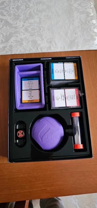 Juego de mesa Tabú, perfecto para pasar un buen rato. - Incluye cartas de juego 228. En total venían 230m pero la 1 y la 202 no están - Incluye un temporizador. -Hay algunas cartas marcadas, sucias o desgastadas se ve en la fotos.