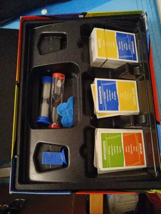 Juego de mesa Tabú, una experiencia de diversión. Está casi nuevo, usado pocas veces. Quedan unas cuantas cartas por abrir. El reloj de arena se ha solidificado y no funciona.