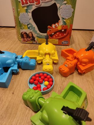 Juego de mesa Tragabolas de Hasbro, en muy buen estado. Es un juego divertido para niños. - Incluye 4 hipopótamos tragones y varias bolas de colores. - Ideal para jugar en familia o con amigos. - Perfecto para desarrollar la motricidad fina y la coordinación ojo-mano. Juego de toda la vida que encanta a los niños y son risas aseguradas! # juego, cocodrilo, hipopótamos, tragar bolas, diversión, niños, pequeños, familiar, juguete