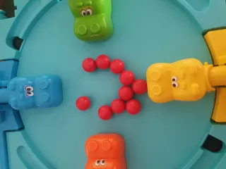 Los jugadores tienen que apretar la pestaña del perrito y van tragando las bolitas que se dejan todas en el medio. Gana, quien consigue más bolitas . Divertido, entretenido.... Está en perfecto estado