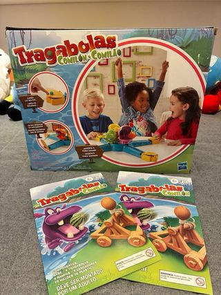 Juego de mesa Tragabolas de Hasbro Gaming. ¡El divertido juego de los hipopótamos tragones! - Apto para mayores de 4 años. - Requiere montaje por un adulto. Incluye caja original e instrucciones Con todas las piezas, funciona perfectamente.