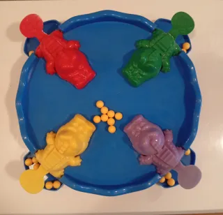 Divertido juego de mesa para los más pequeños. - Incluye ranas de colores: morado, naranja, verde y rojo. - Bolas de colores para lanzar.