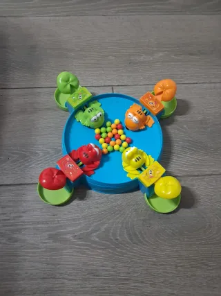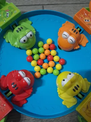 Divertido juego de mesa para niños. - Incluye 4 ranas de diferentes colores: verde, naranja, rojo y amarillo. - Viene con una bolsa de bolitas de colores para que las ranas se coman. -faltan algunas bolas , las que hay son las que se ven en foto, 9 amarillas ,8 naranjas, 7 verde y 5 rojas
