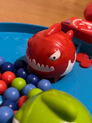 Tradicional juego tragabolas. “Pickabola Piraña”, de Imaginarium. 8 bolas de cada color. Sin caja, tal como se ve en las fotos.
