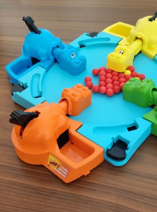 Juego de mesa Tragabolas en buen estado. - Incluye hipopótamos tragones y bolas pequeñas. - Recomendado para niñ@s a partir de 4 años.