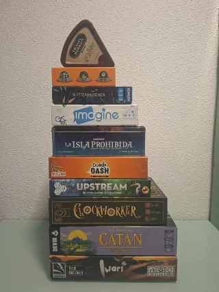 Vendo los siguientes juegos, con todos sus componentes y en buen estado: - Catan energías: 32 euros - Iwari: 20 euros - Clockworker: VENDIDO - La isla prohibida: 15 euros - Upstream: 10 euros - Doodle dash: 8 euros - Hojarasca (en alemán): VENDIDO - Kaboom: VENDIDO - Imagine: 8 euros - Trivial pursuit bite Harry Potter: 5 euros