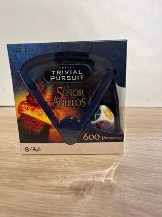 Juego de preguntas y respuestas Trivial Pursuit, edición especial de El Señor de los Anillos. Ideal para fans de la saga. - Incluye 600 preguntas. - Edad recomendada: 8+ años. - Para 2-8 jugadores. - No incluye tablero