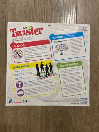 El clásico juego de Twister, perfecto para divertirse en familia o con amigos. Incluye la alfombra de juego y las instrucciones. - Para mayores de 6 años. - Requiere montaje por un adulto. -Está sin usar.