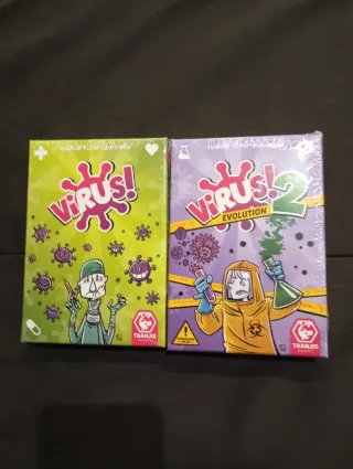 Se vende pack de los juegos de cartas Virus! y Virus! 2 Evolution de Tranjis Games. Ambos juegos están nuevos y con el precinto de fábrica intacto. - Juego Virus! - Expansión Virus! 2 Evolution
