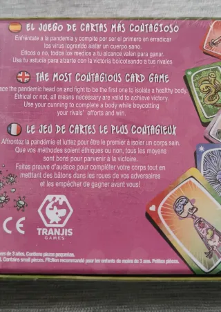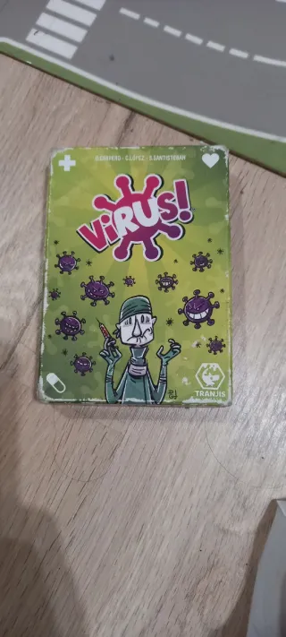 Juego virus Tranjis Tiene las cartas desgastadas y la caja desgastada pero está completo. Las instrucciones están en francés pero con cualquier tutorial puedes aprender o alguien que sepa jugar te puede enseñar.