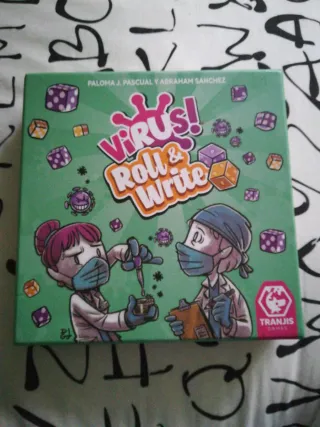 Juego de mesa Virus! Roll & Write. - Juego de cartas y dados. - Ilustraciones temáticas de virus y científicos. - Incluye componentes para jugar.