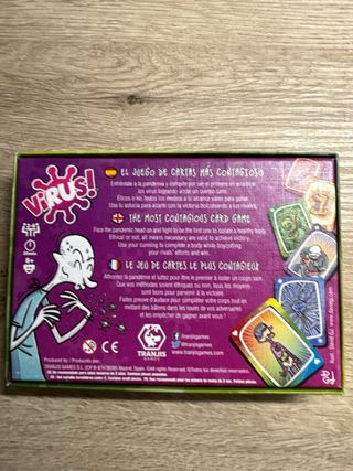 Juego de cartas Virus de Tranjis Games. Contiene el juego con las instrucciones en Castellano, Inglés y Francés Vendo por falta de uso