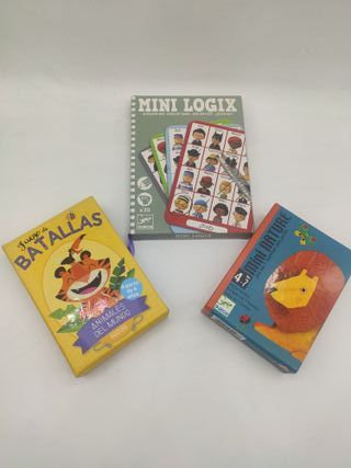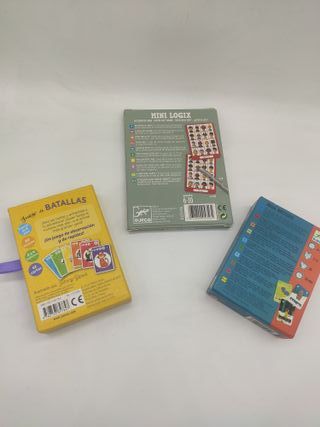 Conjunto de tres juegos de mesa con cartas ideales para jugar en familia: Mini Logix: Juego de ¿quien es quien? Djeco, Juego de Batallas de Animales del Mundo y Mini Nature: Juego de 7 familias de Djeco. Faciles de jugar y transportar. Buen estado, tal cual las fotos. Precio por todos, sueltos 5€ unidad. Mas juguetes y cuentos en mi perfil. Recogida en Alcala de Henares o envio. juego de tablero estrategia familiar sostenible madera pequeños niños infantil regalo navidad reyes cumpleaños coleccion coleccionistas risk catan heroquest azul patchwork hotel tia agata cluedo monopoly haba desierto prohibido misterio carcassone virus