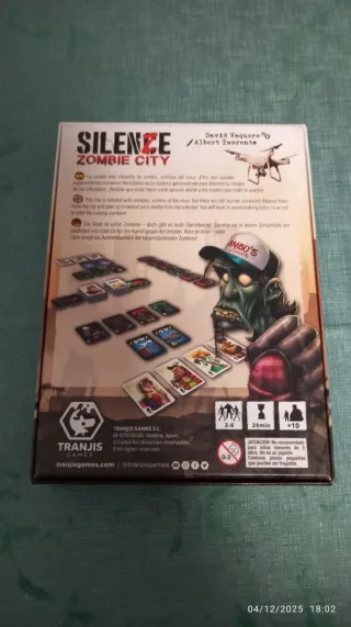 Juego de mesa Silence Zombie City, una aventura de supervivencia contra zombies. Ideal para partidas rápidas y emocionantes. - Juego de cartas. - Ilustraciones de David Vaquero y Albert Tworents. - Para 2-6 jugadores. - Duración aproximada: 20 minutos. - Edad recomendada: +10 años.