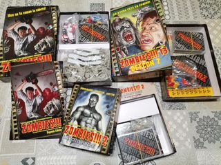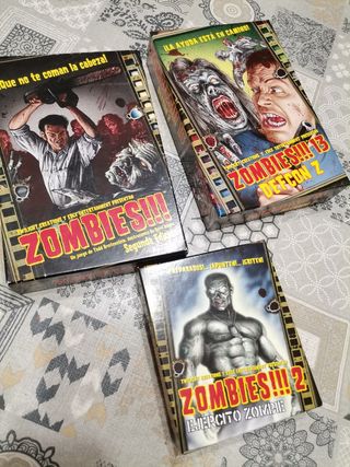 Pack de juegos de mesa Zombies!!!. - Zombies!!! (Segunda Edición) - Zombies!!! 4: El Fin... (Segunda Edición) - Zombies!!! 3.5: ¡Siguen en Pie! Todos los componentes. Cajas solo un poco gatadas del roce de la estantería. No separo.