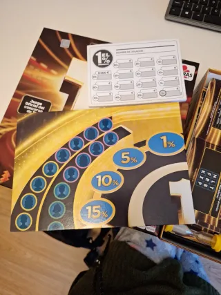 Juego de mesa ¿Llegarás al 1%?, la versión oficial del concurso de TV. - Para 2-6 jugadores. - Edad recomendada: 8+ años. - Duración aproximada: 30 minutos. - Incluye No todo es conocimiento: también se necesita lógica e intuición.