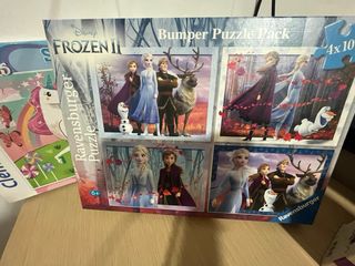 Puzzle de unicornio y el pequeño de frozen sin empezar y el de 4 puzles de frozen en buen estado.