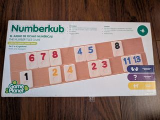 Juego de mesa Numberkub en buen estado. Ideal para jugar en familia o con amigos. - Incluye 106 fichas numeradas. - 4 colores diferentes. - 2 a 4 jugadores. - Tableros