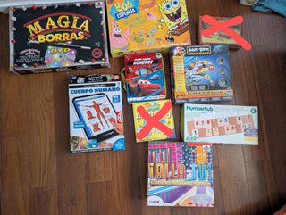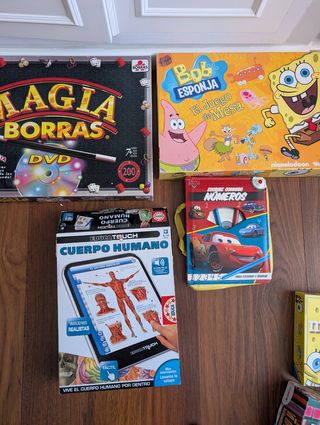 Lotes de juegos de mesa para niños, en buen estado. Ideales para jugar en familia. - Incluye Magia Borras 200 trucos (incluye DVD), Bob Esponja El Juego de Mesa, Angry Birds Star Wars, aprender números con Cars, Numberkub, ¡allá tú! Y educatouch del cuerpo humano Se venden en pack o por separado. Fotos del interior de los juegos en los anuncios de mi perfil. Escucho ofertas