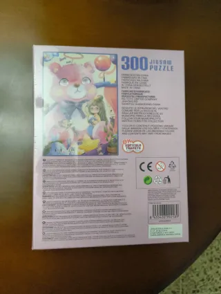 Puzzle de la marca Ousdy con un diseño de oso rosa y una niña. - 300 piezas. - Medidas: 377x252mm. - Edad recomendada: 3+ años.