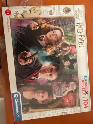 Puzzle de la marca Clementoni con temática de Harry Potter. Incluye 104 piezas. - Licencia oficial de Wizarding World. - Dimensiones: 48,5 x 33,5 cm. - Recomendado para mayores de 6 años. - pie face esta sin abrir Precio negociable