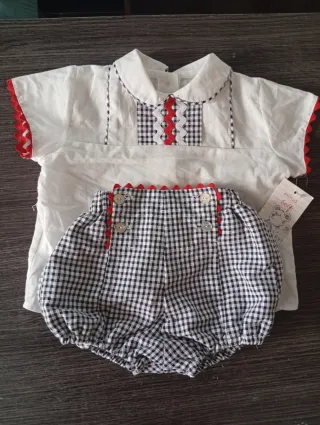 Conjunto bebé blusa y bombacho cuadros.6 meses