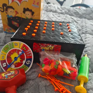 Divertido juego de mesa para niños. - Incluye martillo, bomba de aire y globos. - Incluye ruleta para determinar el número de golpes. - Diseñado para 2-4 jugadores.