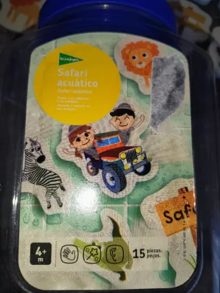 Juego de baño Safari acuático de El Corte Inglés. Ideal para la bañera o azulejos. - Flotan y se adhieren a los azulejos. - Incluye 15 piezas. - Recomendado para mayores de 4 años.