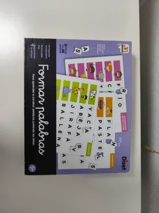 Juego educativo de Diset para aprender a leer y formar palabras. Incluye letras y tarjetas. - Diseñado para niños de +5 años. - Sistema autocorrectivo. - Incluye tarjetas con imágenes y palabras. - Contiene letras para deletrear.