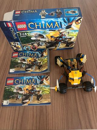 Set de construcción LEGO Chima 70002. - Incluye instrucciones de montaje. - Contiene el coche de batalla y figuras.