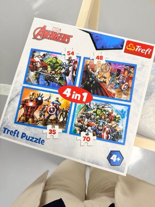 Set de 4 puzzles de los Vengadores de Marvel. - Incluye 4 puzzles con diferentes imágenes de los Vengadores. - Puzzles de 54, 48, 35 y 70 piezas. - Recomendado para mayores de 4 años.
