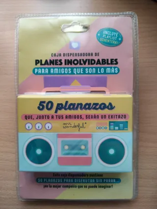 Caja dispensadora de Planes Inolvidables de Mr Wonderful. - Contiene 50 planes para disfrutar. - Incluye playlist Ochentera. - Diseñada para amigos.