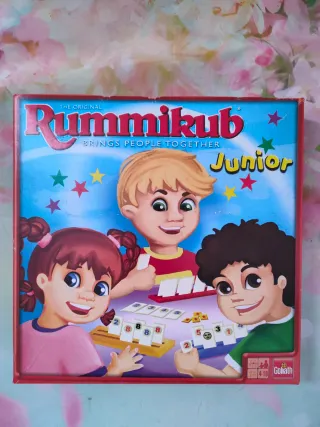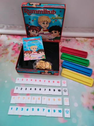 Juego de mesa Rummikub Junior, perfecto para los más pequeños. Fomenta la lógica y la diversión en familia. - Diseñado para niños. - Incluye fichas y soportes para jugar. Usado dos veces, muy divertido para niños y adultos.