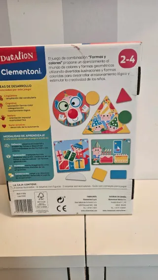 Juego educativo Clementoni Formas y Colores para niños. - Incluye 16 tarjetas de colores y 4 fichas ilustradas. - Diseñado para desarrollar la lógica y la creatividad. - Apto para edades de 2 a 4 años. - Fabricado en Italia.