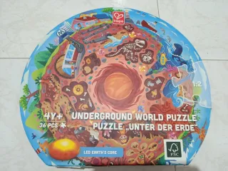 Puzzle educativo de Hape que representa el mundo subterráneo. Ideal para niños a partir de 4 años. - 36 piezas. - Ilustración detallada del interior de la Tierra. - Incluye la frase LED EARTH'S CORE.