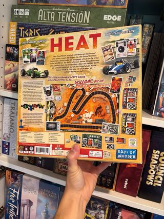 heat juego de mesa 1 partida no es español pero da igual es independiente de idioma y no tiene nada de texto el juego si juega sin problema