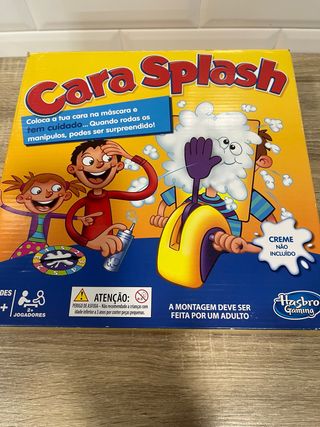 Divertido juego de mesa Cara Splash de Hasbro. ¡Pon tu cara en la máscara y gira los mandos para ver quién se lleva la sorpresa! - Para 2 o más jugadores. - Apto para mayores de 3 años. - Requiere montaje por un adulto. - Crema no incluida.