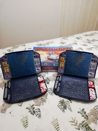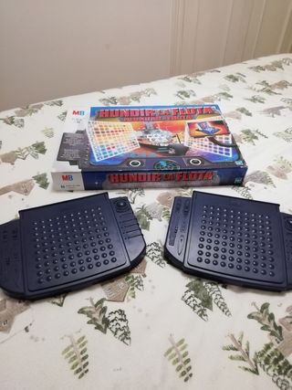 Juego de mesa clásico Hundir la Flota de MB. - Incluye dos tableros de juego. - Contiene fichas rojas y blancas para marcar los disparos y los aciertos. - Caja del juego Hundir la Flota incluida. - A uno de los tableros le falta un barco, le puedes poner dos fichas - La caja tiene algunos desperfectos se ven en las dos últimas fotos