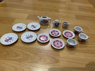Conjunto de mini tazas, tetera, jarrita y platos de cerámica con diseño de la Patrulla Canina. Todo es mini, súper gracioso. Esta como Nuevo. - Incluye tetera. - Incluye azucarero. - Incluye jarrita. - 8 platos (4 de cada diseño) - 3 tazas.