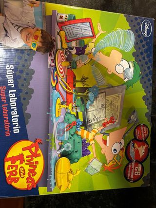Juego de experimentos Súper Laboratorio de Phineas y Ferb. - Incluye libro de experimentos. - Contiene 56 experimentos. - Del listado de sustáncias falta la solución de burbujas - Del listado de materiales falta la lupa