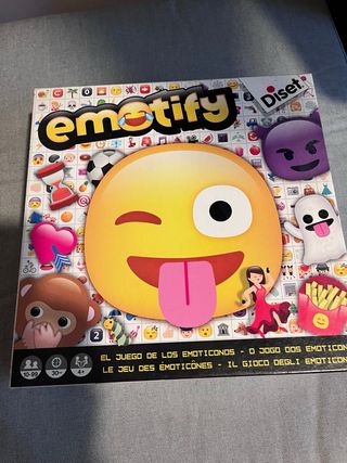 Juego de mesa Emotify de Diset, ideal para niños y adultos. - Para 2-4 jugadores. - Edad recomendada: 4+ años. - Tiempo de juego: 30 minutos. - Idiomas: Español, Francés, Portugués, Italiano.