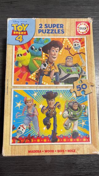 Pack de dos puzzles de madera de Toy Story 4. - Incluye dos puzzles de 50 piezas cada uno. - Personajes de Toy Story 4. - Fabricado en madera.