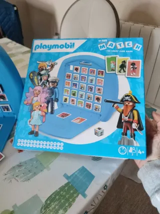 Juego de mesa de Playmobil con tablero y cartas. - Tablero azul con 24 casillas para personajes. - Incluye varias cartas de personajes.