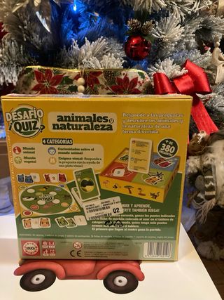 Juego de mesa educativo de preguntas y respuestas sobre animales y naturaleza. - Incluye más de 380 preguntas. - Ideal para aprender sobre el mundo animal y vegetal. - Fomenta la curiosidad y el conocimiento visual. - Para 2-4 jugadores. - Edad recomendada: 7+ años.