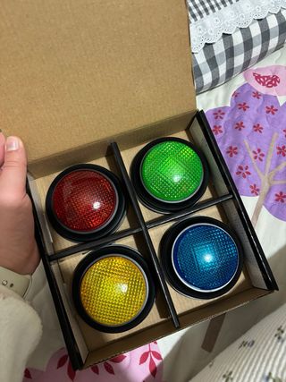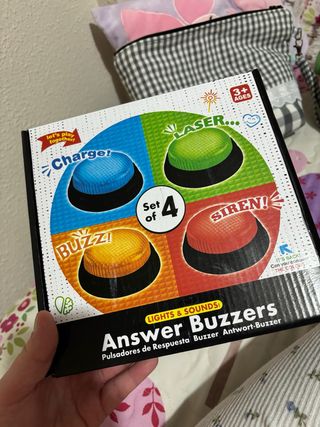 Set de 4 buzzer de respuesta con luces y sonidos. Esta totalmente nuevo sin estrenar precio original 18€