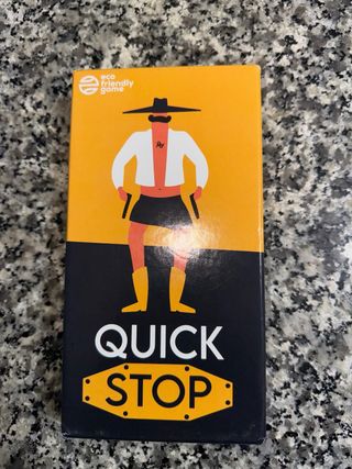 Juego de cartas Quick Stop para toda la familia. Es un juego divertido y rápido. - Diseño eco friendly game. - Ilustración de un vaquero con pistolas. - Sin abrir