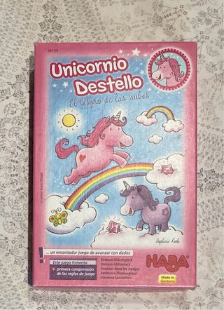 Juego de mesa Unicornio Destello de HABA, un encantador juego de avanzar con dados. - Fomenta la comprensión de las reglas de juego. - Ilustraciones de Kristin Mückel. - Fabricado en Alemania. Juego de mesa de 3 a 99 años Muy buen estado ( y obviamente con todas las piezas) Tengo varios libros y películas en el perfil que, con el descuento por compra de varios productos, te pueden salir tiradísimos de precio. Ánimate échale un ojo a mi perfil😉