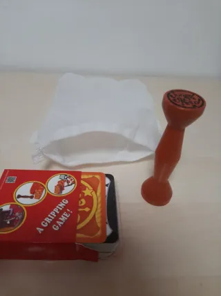 Se vende juego de mesa A Gripping Game!. Incluye cartas y bolsa. - Caja del juego con diseño llamativo. - Cartas con ilustraciones. - Bolsa de tela para guardar componentes.